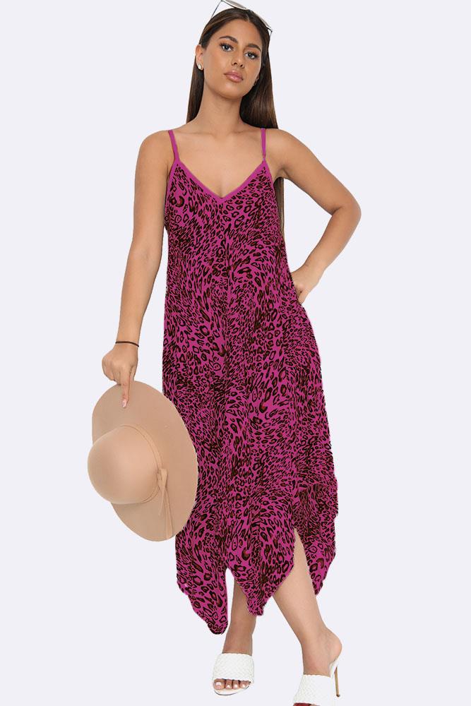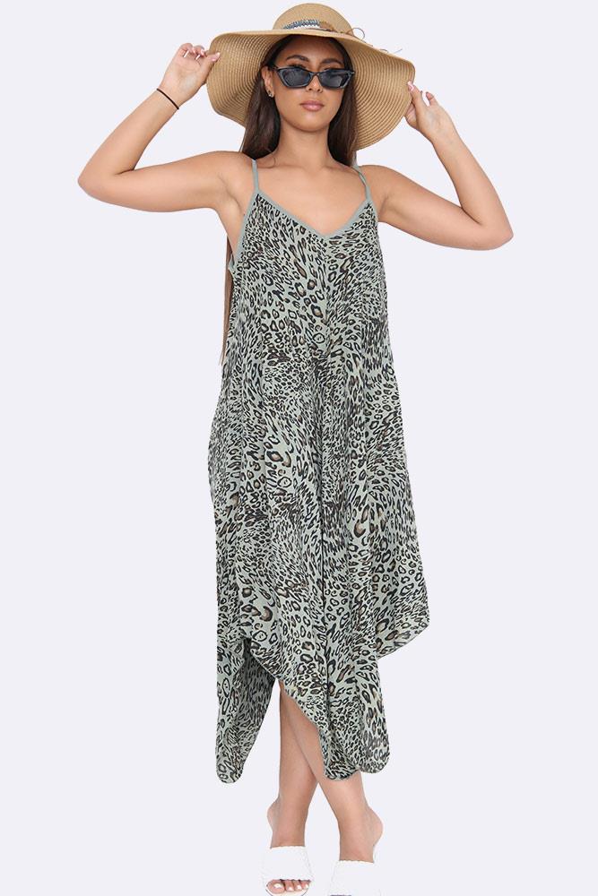 Italian Leopard Strappy Hanky Hem Dress