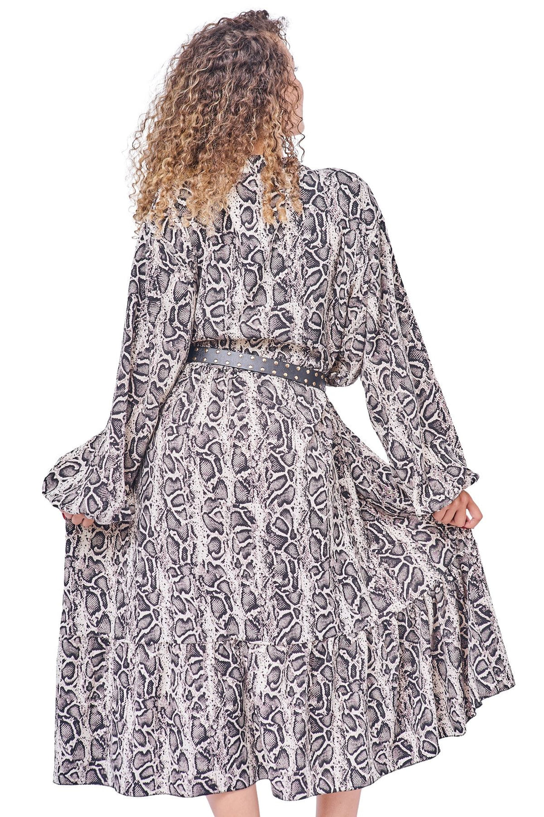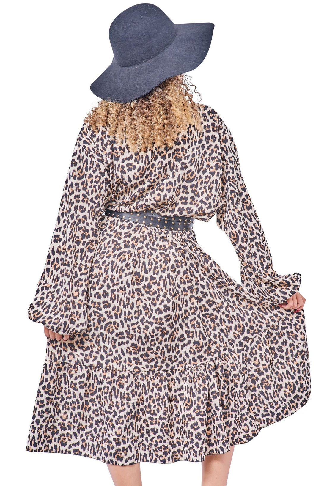 Make a bold yet elegant statement with this stunning leopard print dress, beautifully crafted from soft Italian viscose. Designed with plus-size women in mind, this loose-fit silhouette offers comfort, breathability, and graceful movement for warmer autumn and winter days. The shawl collar neckline adds a sophisticated twist to the classic casual dress, while the long sleeves provide just the right coverage for breezy evenings. This lightweight piece drapes effortlessly, allowing you to feel stylish and relaxed all day long. Whether you're heading out for a brunch date or enjoying a weekend getaway, this dress adapts with ease. The fierce yet refined leopard print adds character without overwhelming, making it a standout piece in any wardrobe. Pair it with sandals for a relaxed look or layer with a belt and boots for a touch of edge. Feel confident, comfortable, and fashion-forward in this Italian-made essential.