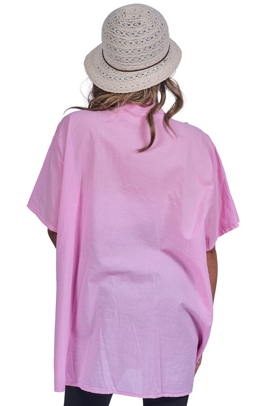 Experience effortless charm with this Italian cotton shirt, designed for plus-size women who love a blend of casual elegance and comfort. Featuring intricate raised embroidered crochet-style lace accents, this shirt exudes a delicate, feminine appeal. The mandarin collar, paired with a partial button-down front, offers a refined yet relaxed look, making it a perfect choice for spring and summer styling. Short, loose-fitting sleeves enhance the airy, breathable feel, while the lightweight fabric ensures all-day comfort. The button placket adds a touch of structure, balancing the shirt’s relaxed and flowy silhouette. Whether paired with linen trousers for a sophisticated daytime look or denim for casual outings, this versatile piece is a must-have for warm-weather wardrobes. With its timeless embroidery and effortlessly chic design, this shirt brings a soft, graceful touch to any ensemble, making it perfect for casual elegance.