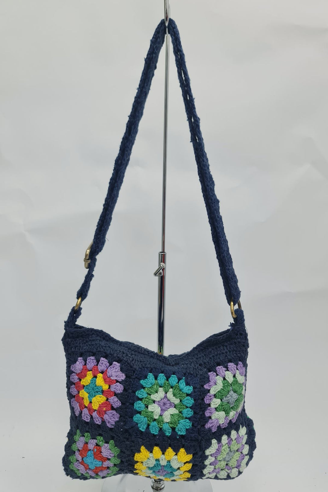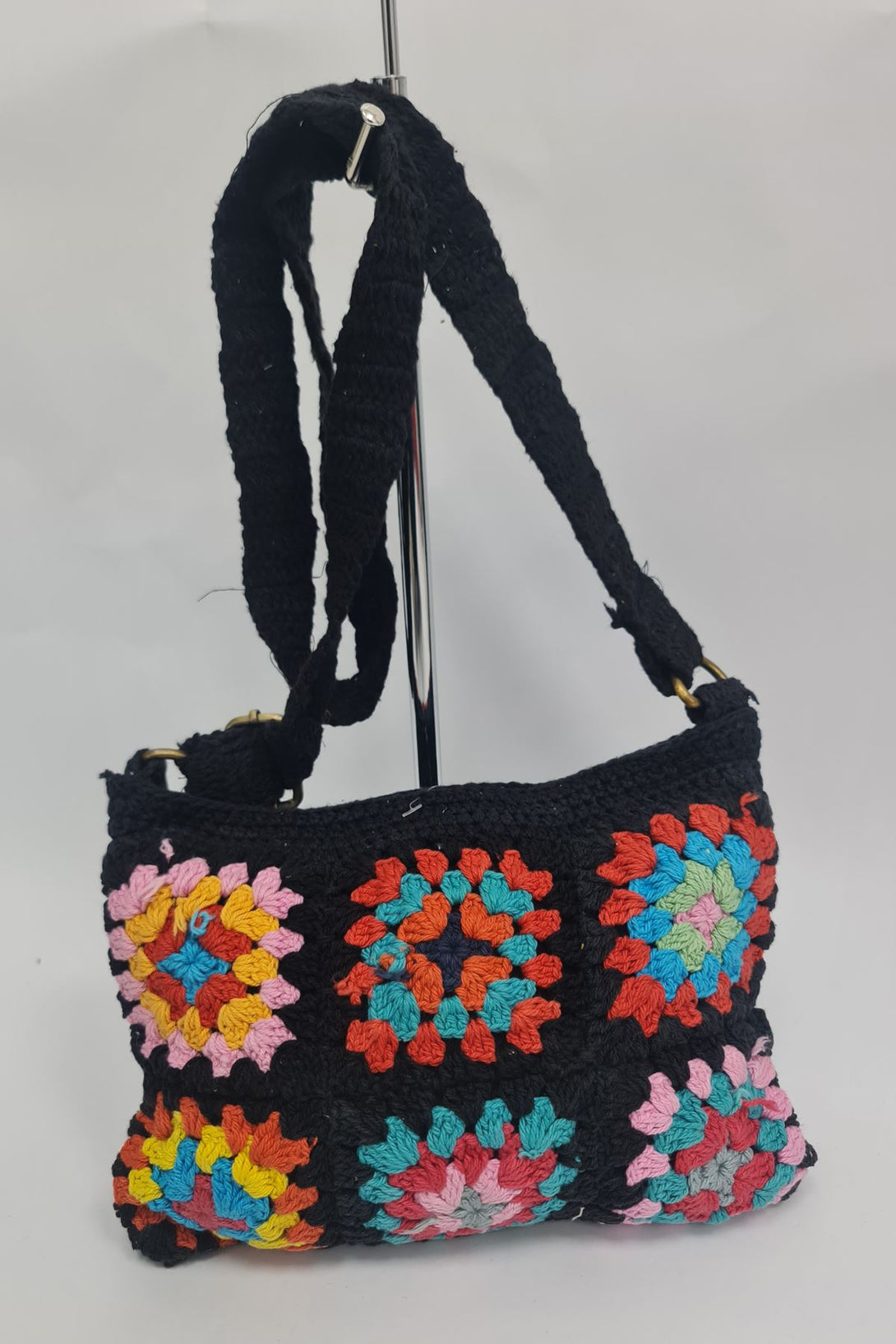 Infuse your look with artisanal charm with this Handmade Crochet Boho Shoulder Bag. Featuring a vibrant granny square pattern stitched onto a classic black backdrop, this bag channels vintage appeal with a modern bohemian twist. Crafted with care using sturdy yarn, its soft yet durable structure is perfect for casual outings, festivals, or sunny getaways. The colorful floral-inspired motifs in shades of pink, turquoise, red, yellow, and more offer eye-catching detail, while the adjustable crochet strap ensures comfortable wear. A chic and nostalgic accessory that easily holds your daily essentials while turning heads everywhere you go.
