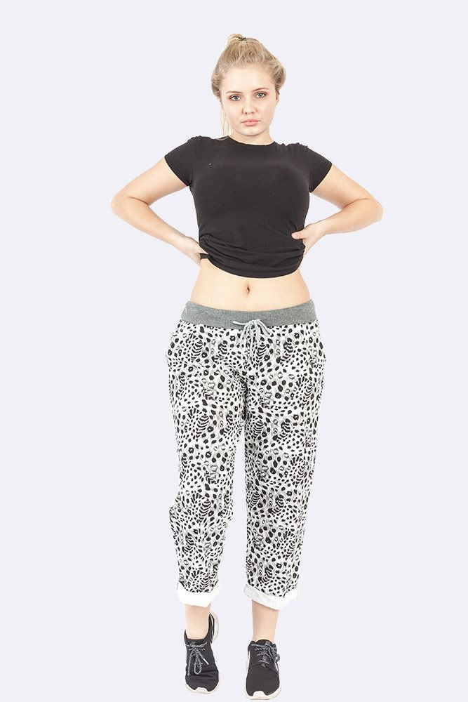 A wardrobe essential is a restock must have. Check this beautiful print trousers off your list with our stylish version. This hero piece benefits from an elasticated ribbed waistband and discreet pockets. A seasonless everyday essential.