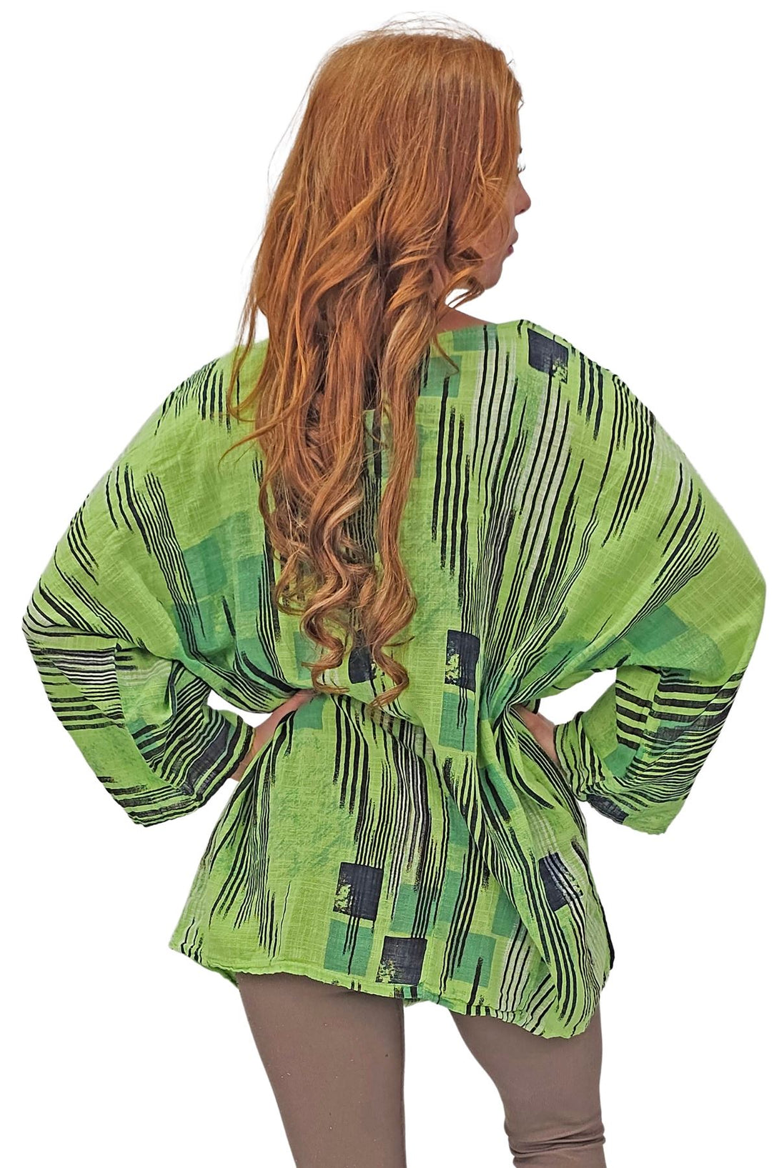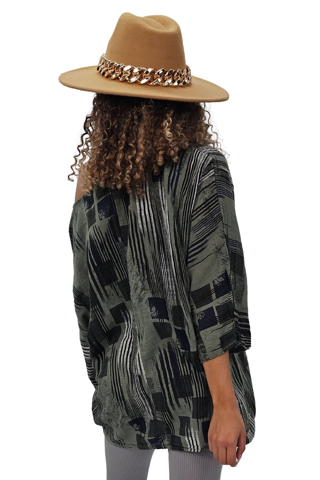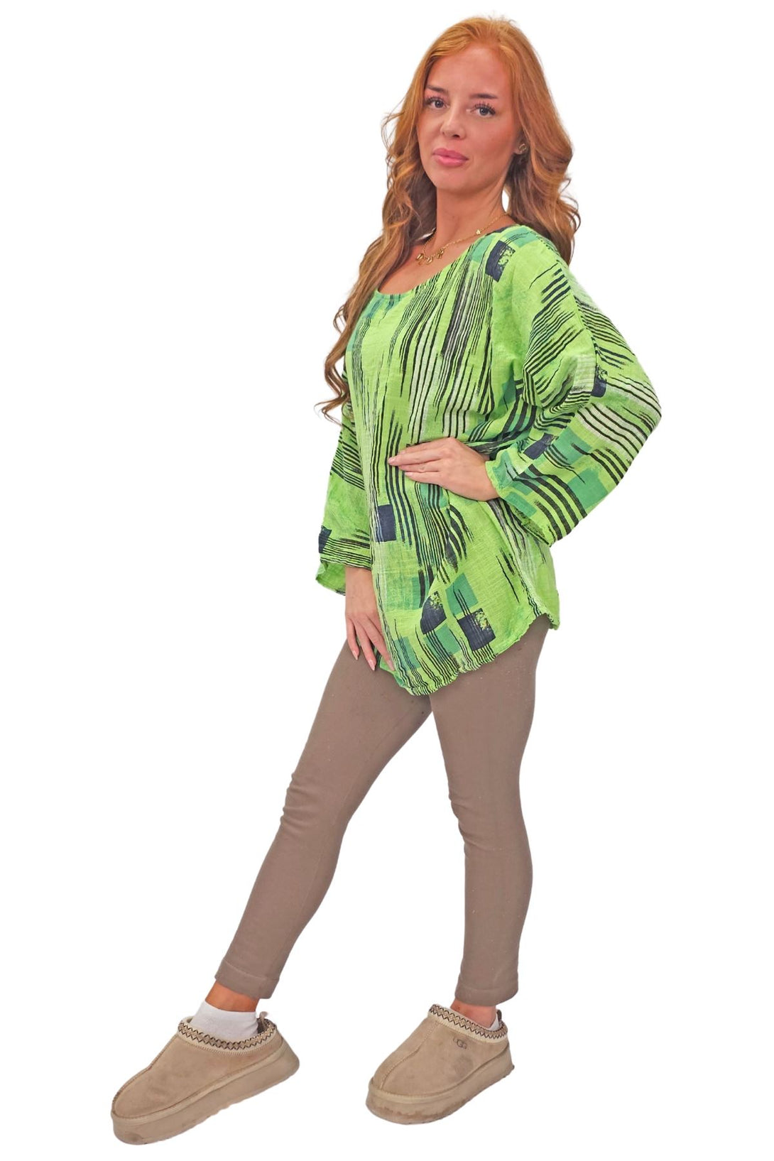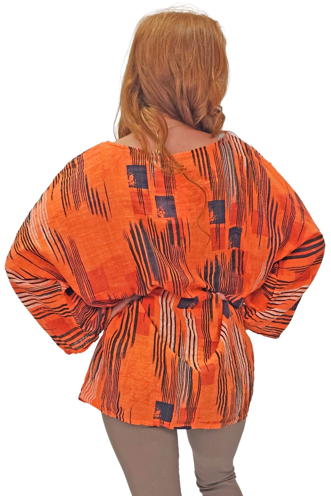 This stylish tunic top combines the vibrant charm of an abstract print with the ease of a relaxed fit, perfect for the spring and summer seasons. Crafted from Italian viscose, it promises a soft, breathable feel while maintaining durability. Featuring a round neckline and 3/4 sleeves, the tunic offers a versatile look that can be dressed up or down. The oversized fit ensures comfort and freedom of movement, making it an ideal choice for casual outings or laid-back days at home. The added detail of a bold necklace accent gives this tunic a modern edge, elevating it from simple to chic. Plus-size options ensure a flattering fit for all body types. Whether paired with leggings or jeans, this tunic is a must-have addition to your seasonal wardrobe.