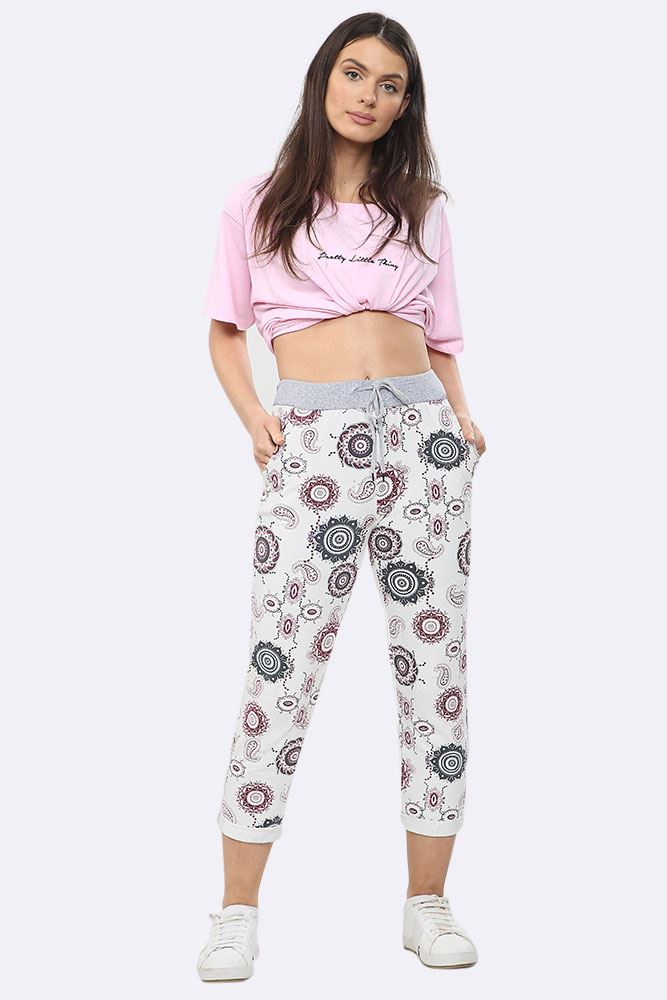 A wardrobe essential is a restock must have. Check this beautiful print trousers off your list with our stylish version. This hero piece benefits from an elasticated ribbed waistband and discreet pockets. A seasonless everyday essential.