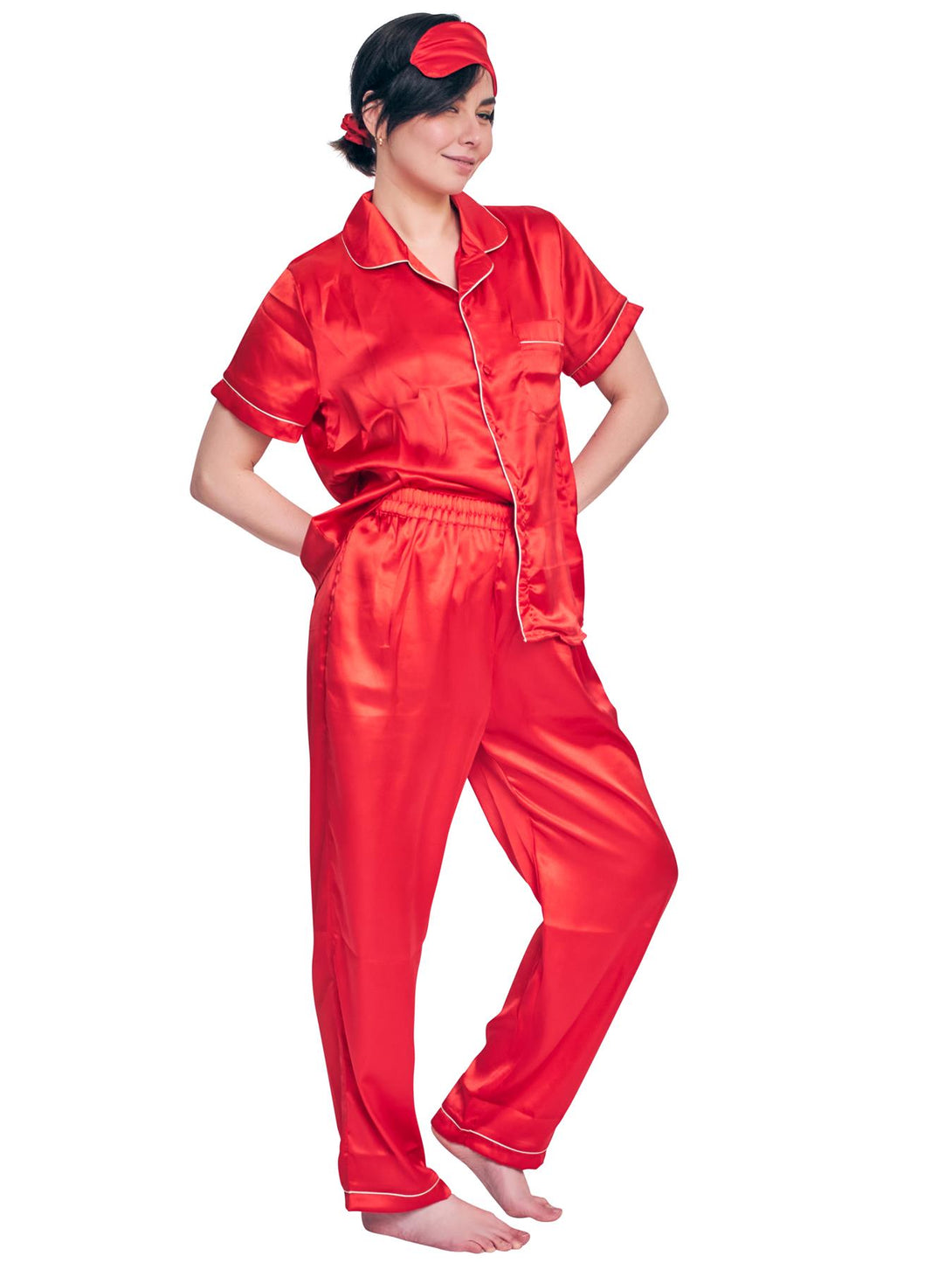 Effortless style meets everyday comfort with this plain polyester co-ord set for women, designed with versatility and elegance in mind. Featuring a classic collared shirt with short sleeves, the lightweight fabric offers a breathable and comfortable fit, perfect for spring and summer days. The shirt is tailored with an elasticated waistband and an open hem, providing a relaxed yet structured look. Front pocket trims add a touch of detail, combining functionality with chic simplicity. The accompanying bottoms are equipped with a drawstring waistband, ensuring an adjustable fit that accommodates all body shapes. Designed with a loose fit and plus-size inclusivity, this co-ord set is perfect for casual outings or laid-back weekends. Whether paired with sneakers for an on-the-go outfit or dressed up with accessories for a polished casual look, this set effortlessly blends practicality with contemporary fashion for women who value comfort and style.