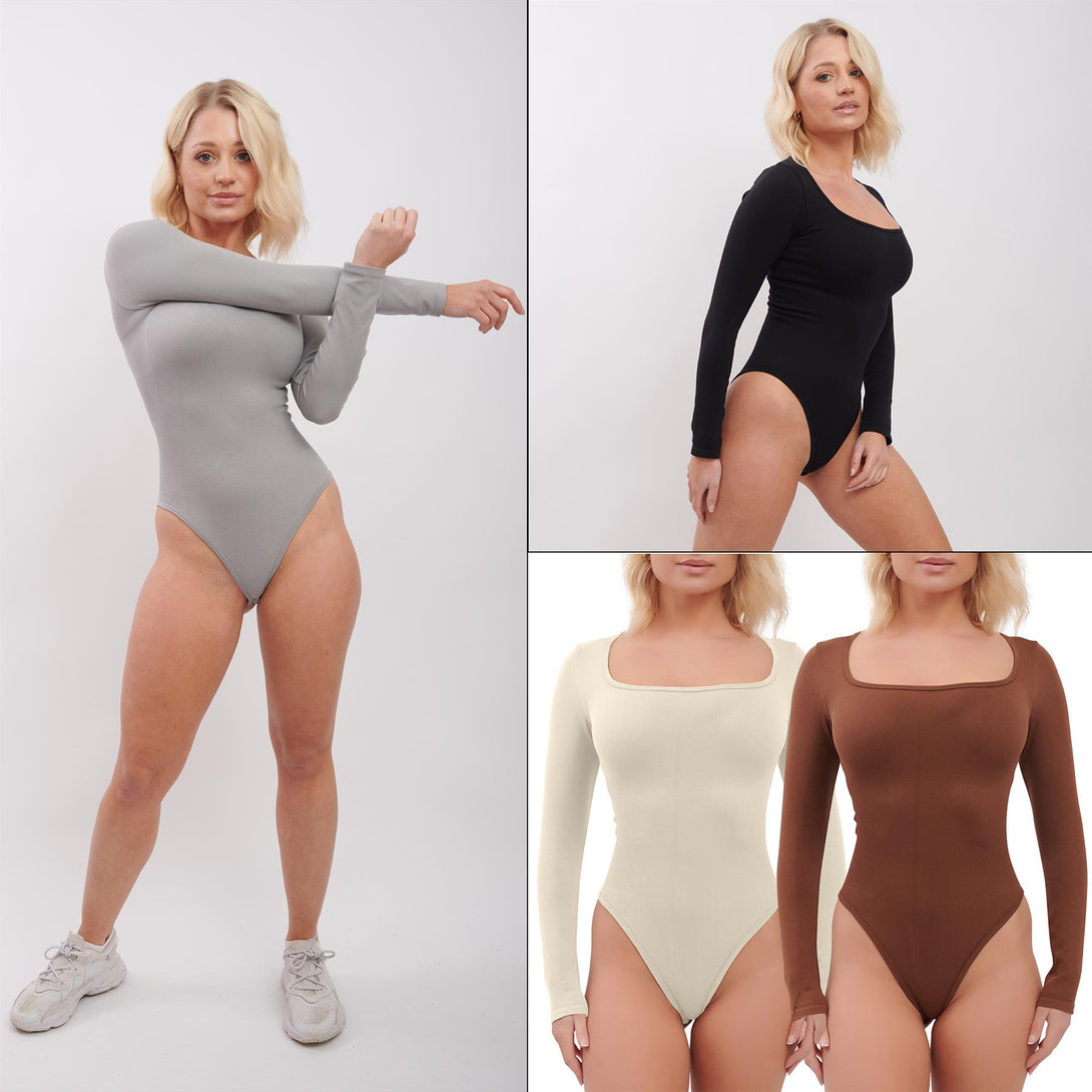 Embrace comfort and style in our Nylon Square Neck Bodysuit for women. This all-season staple features a plain design, long sleeves, and a loose fit, perfect for casual outings. Plus-size-friendly and padded for added support, this bodysuit effortlessly combines fashion with ease.
