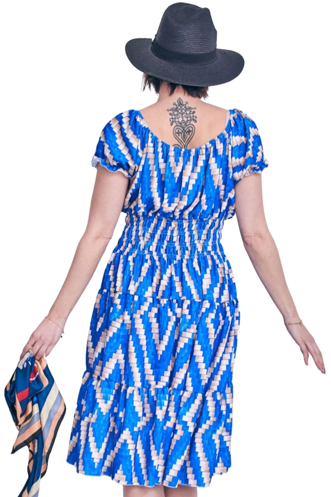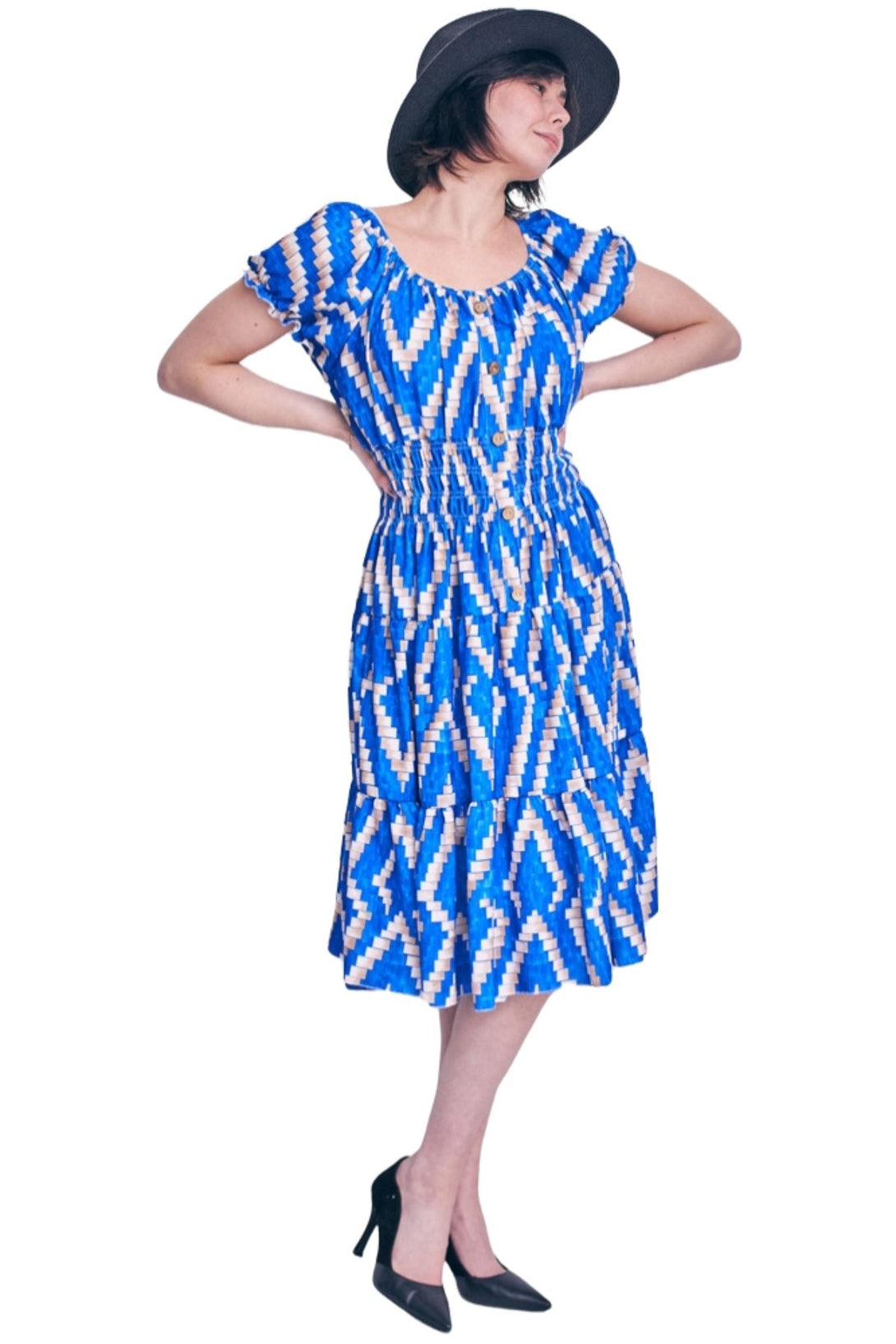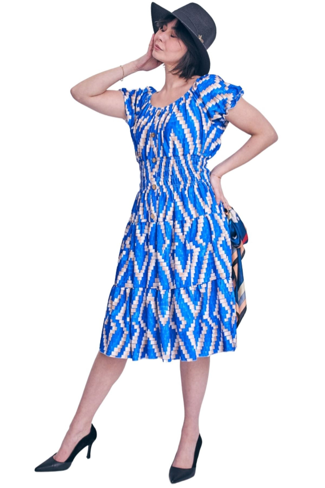 Unleash your bold side with this Italian polyester snake-print dress, a perfect addition to your spring and summer wardrobe. Crafted for plus-size women, the lightweight polyester fabric offers breathability and comfort, ideal for warm-weather outings. The elasticated neckline adds versatility, allowing you to style it on or off the shoulder for a chic look. The cap sleeves enhance the feminine design, while the loose fit ensures effortless comfort throughout the day. A shirred waistline flatters your curves and creates a defined silhouette, while the button details add a sophisticated touch. Pair this dress with strappy sandals or sneakers for a casual day out or accessorize with heels for a more polished vibe. The edgy snake print gives this dress a trendy and modern feel, making it a must-have for casual gatherings, vacations, or weekend adventures. Step out in style and confidence with this standout piece.
