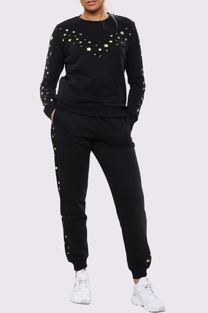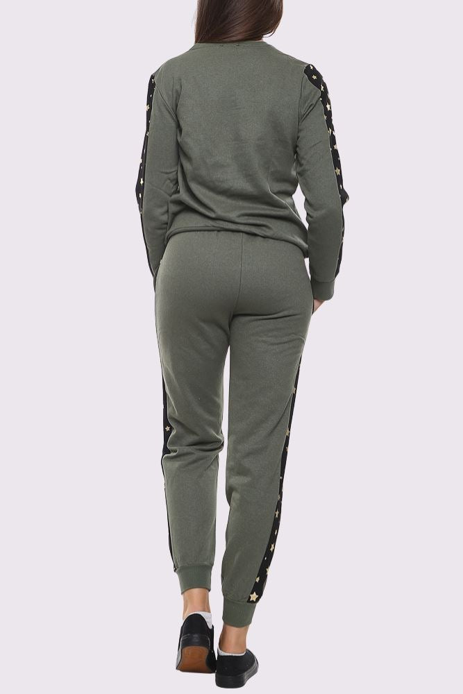 Star Print Side Panel Loungwear Tracksuit