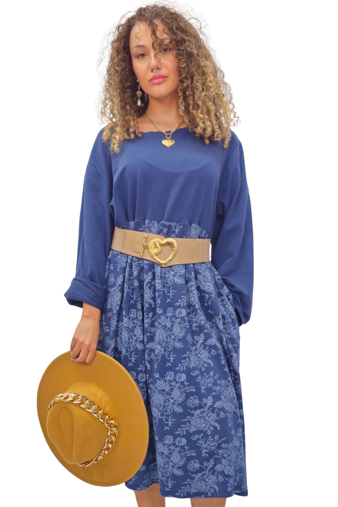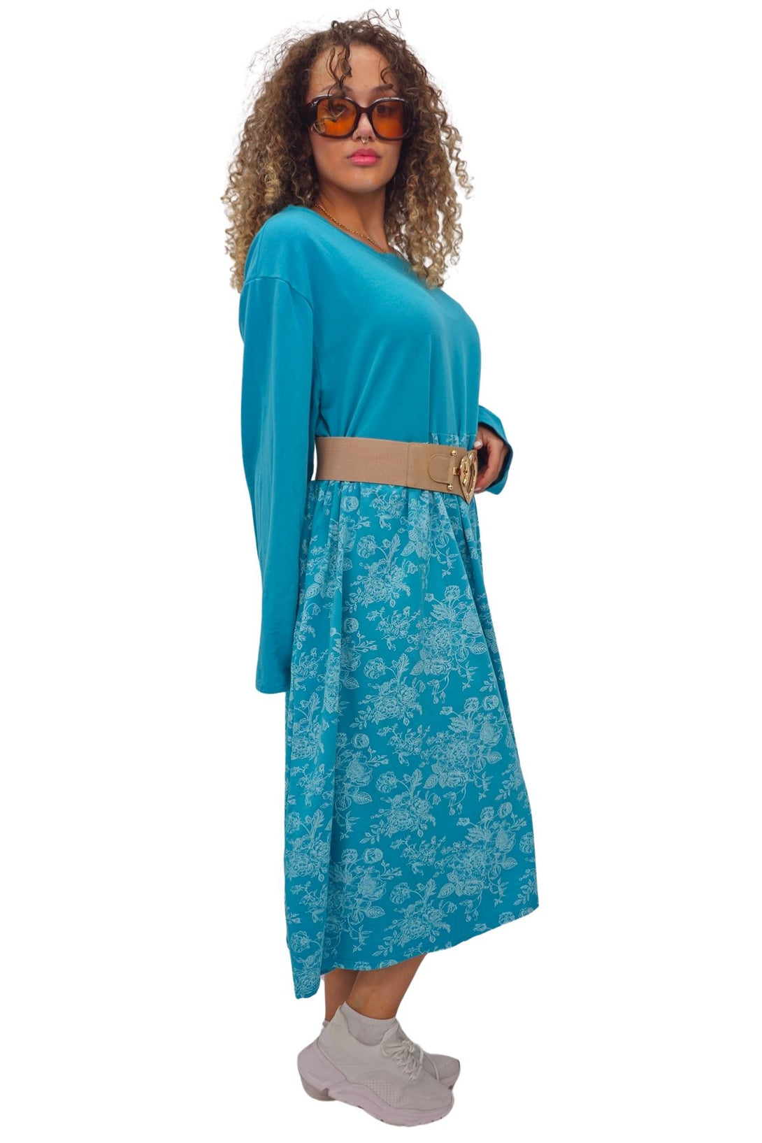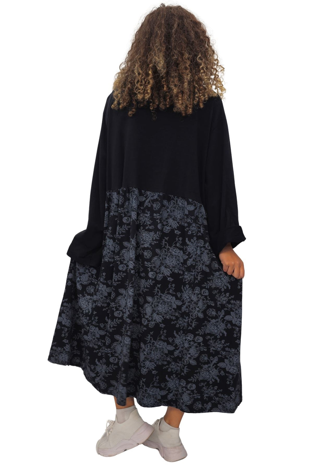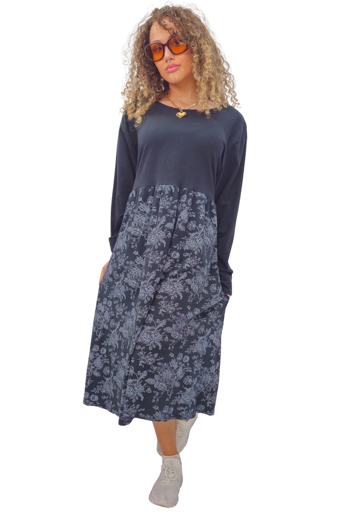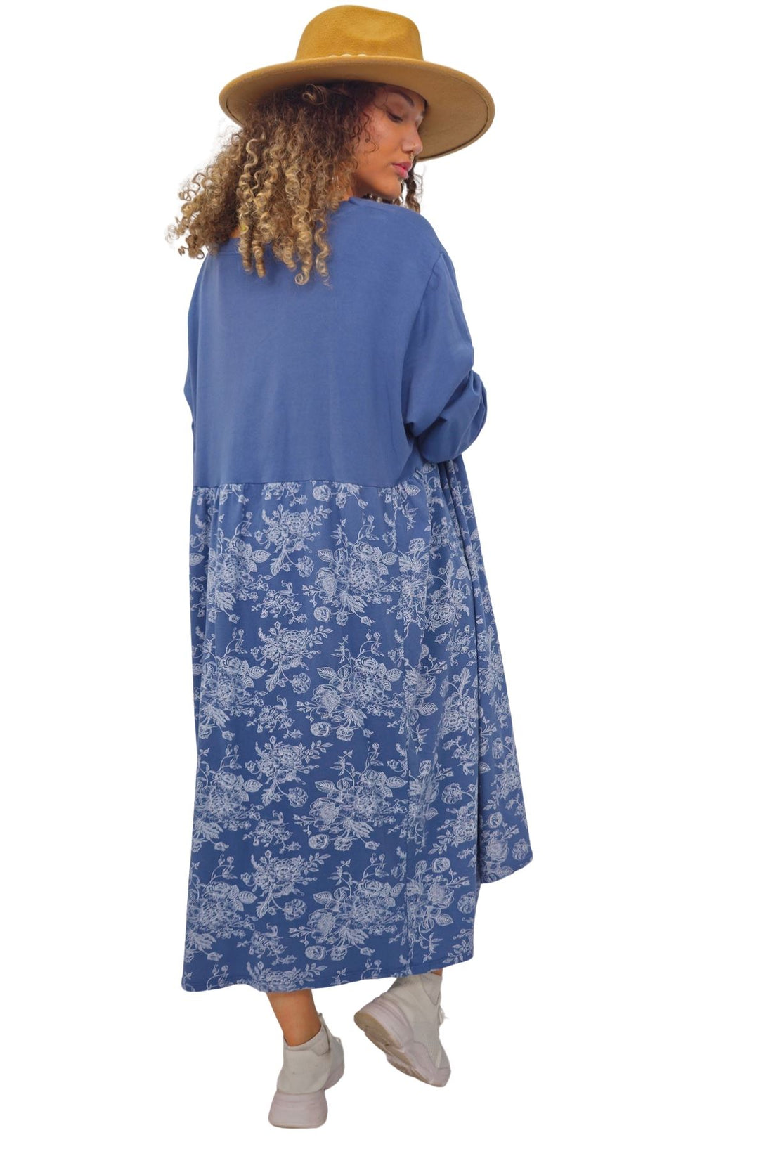 Step into effortless elegance with this Italian cotton dress, featuring a beautiful two-tone floral print that adds a unique charm to your casual wardrobe. Designed for plus-size women, this dress offers a loose fit that flows gracefully, ensuring both comfort and style. The breathable cotton fabric is perfect for the spring and summer seasons, keeping you cool and fresh throughout the day. A classic round neckline and long sleeves provide a flattering silhouette, while the baggy, long-style design enhances the relaxed, airy feel of the dress. The two-tone floral print brings a sophisticated contrast, making this piece ideal for casual outings, weekend brunches, or even vacation strolls. Pair it with sandals for a laid-back look or dress it up with statement accessories. Whether you're out for errands or a relaxed day with friends, this floral-print dress blends elegance with comfort seamlessly.